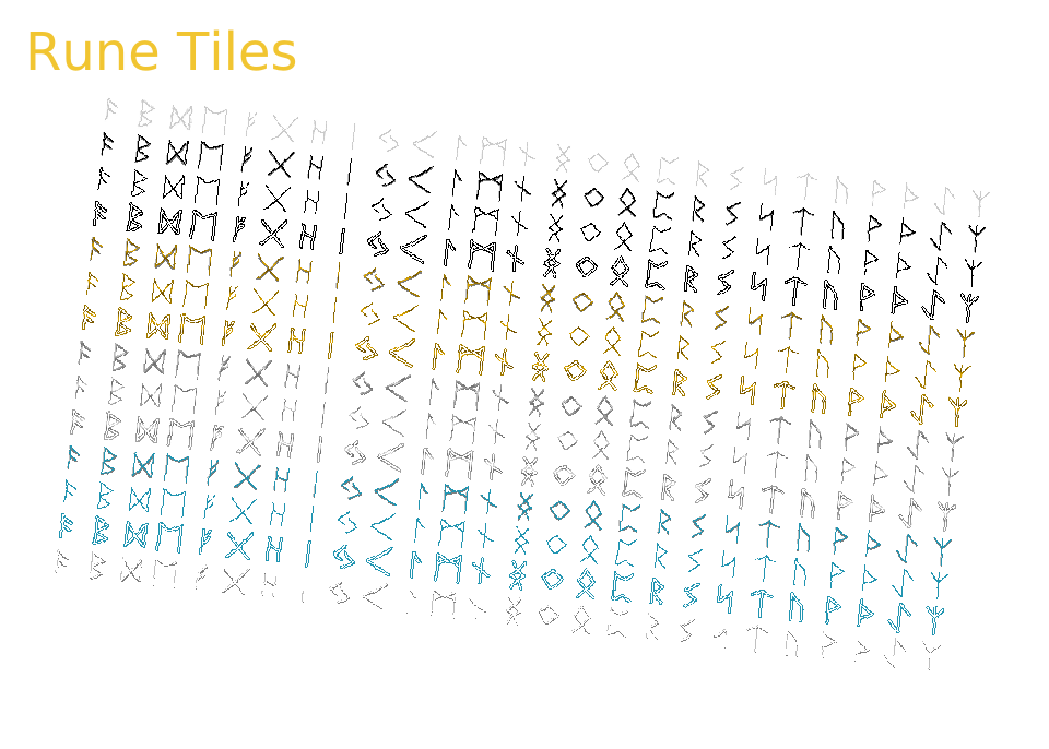 This pack includes a set of 26 Norse inspired rune icons, available in 5 font colours and an alpha version. Also included in the pack are 30 background tile variants in 12 colours to serve as backdrops for the runes. You can mix and match the different rune styles with background tiles of your choosing to match your project's aesthetic!
